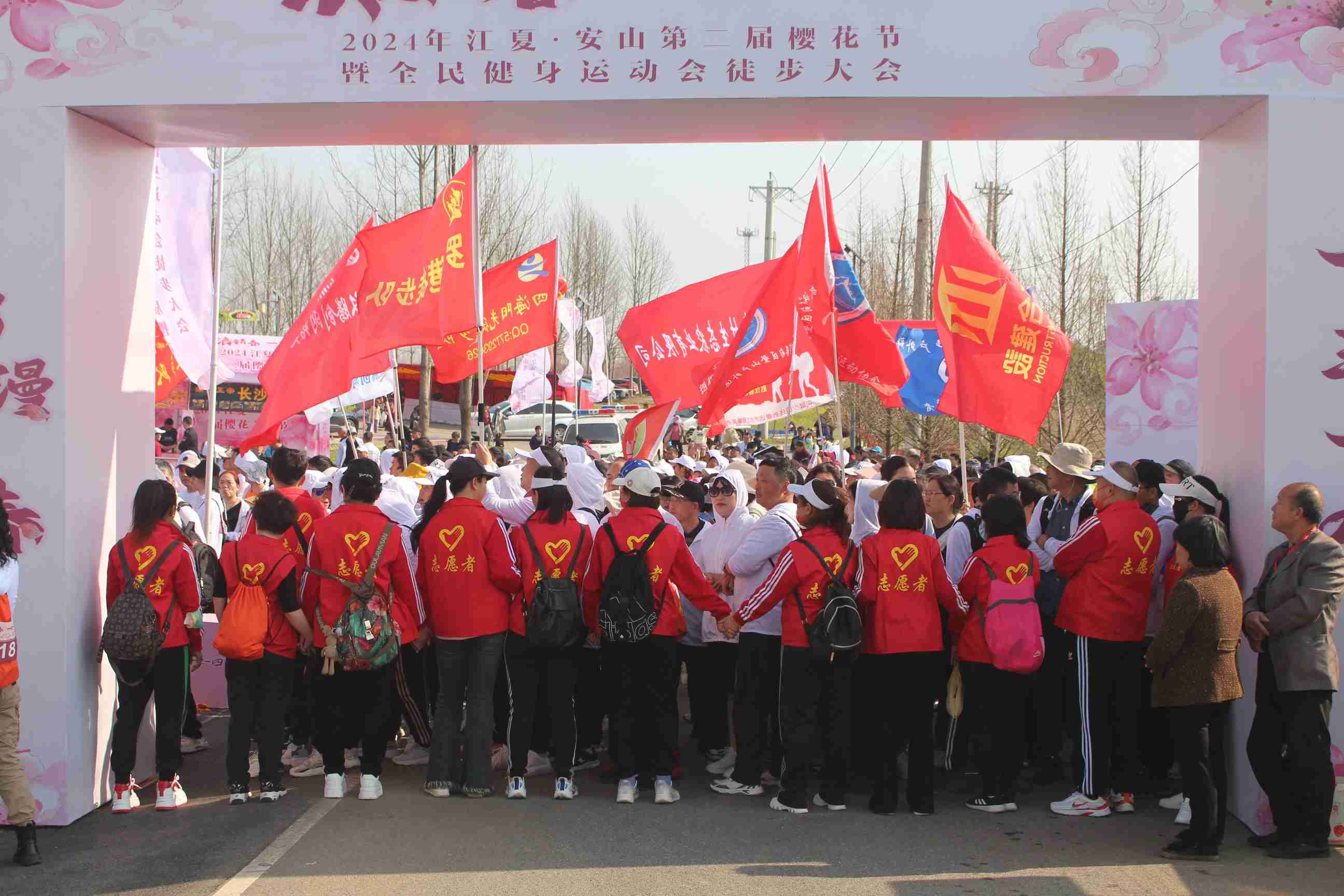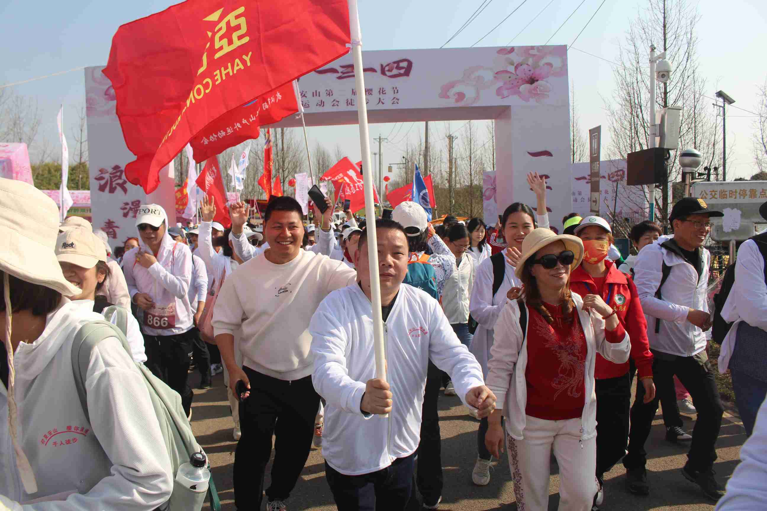 陽春三月魯湖碧波蕩漾,安山郊野公園櫻花綻放,亞合建設員工與1000余名徒步愛好者齊聚于此,參加由中共江夏區委、江夏區人民政府主辦的2024年江夏·安山第二屆櫻花節暨全民健身運動會徒步大會。